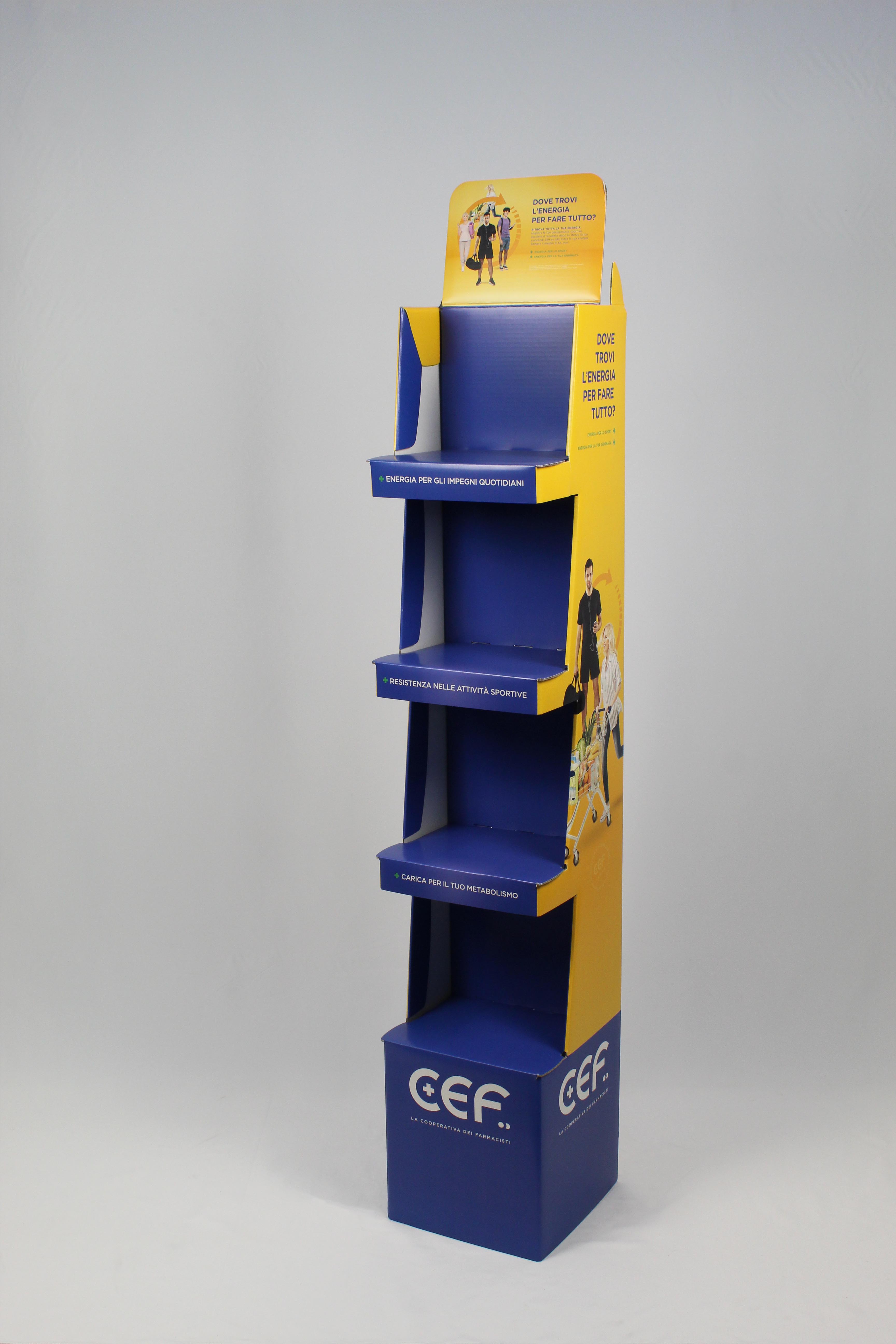 Autoexpo da Terra® è un espositore da terra dal montaggio semplice e immediato, progettato per adattarsi alle esigenze specifiche di ogni cliente. Può essere trasportato steso, riducendo i costi di trasporto, o montato in scatola.